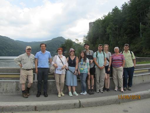 As part of the 2-day field trip that addressed issues pertaining to “Human pressures on hydrosystems: the example of the Arges watershed” (Day 1) we were received by the local agency responsible for raw water provision, flood protection and water monitoring in Pitesti, which not only received us warmly with snacks and gifts but also patiently answered the many questions we had after the introductory presentation. Subsequently we visited the Vidraru Dam near Curtea de Arges (Muntenia province) constructed from 1960 to 1966 whose 166-m-high concrete arch wall dams the Arges River generating 220 MW of hydropower as its primary purpose using 4 Francis turbines located underground in a 42-km-long tunnel system.